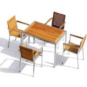 D23 - SET OF SS DINING TABLE WITH 4 BENCH